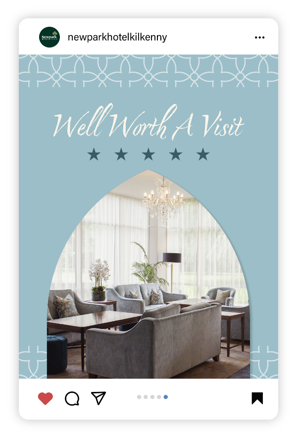 A long standing client of ours, Newpark Hotel approached the Limelight Media team to assist with a brand refresh, creating a new look and feel for their online platforms & to create digital adverts, the brief was to bring a playful yet luxurious feel to their brand. We continue to work side by side with the Newpark Hotel Family to ensure their vision & brand is continuously brought to life.